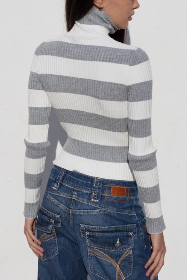 Strickjacke mit Reißverschluss, hoher Hals, geripptes Stoff, langärmelig, kurze Länge, schmale Passform.
