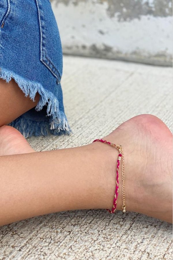 Lurex Fußkettchen, längenverstellbar, Karabinerverschluß.