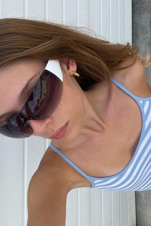 Sonnenbrille, Maskendesign, Kunststoffrahmen, dicken und geschwungenen Bügelenden.