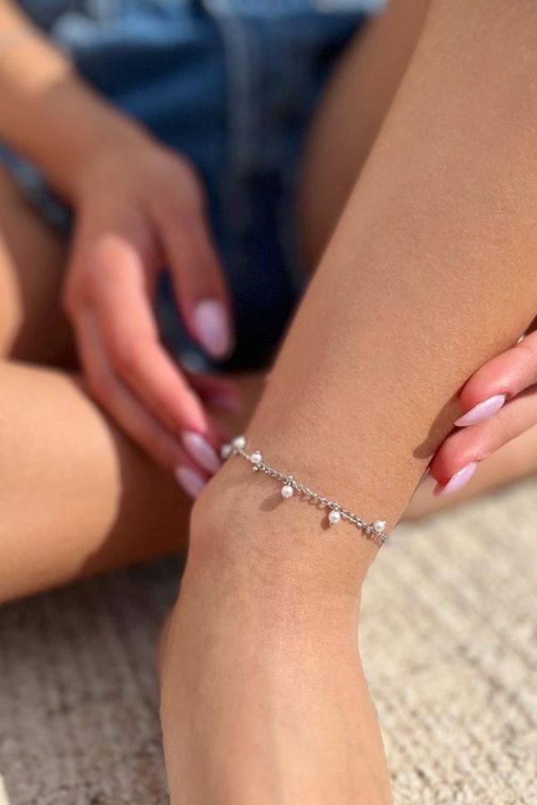 Perlenbesetztes Fußkettchen, längenverstellbar, Karabinerverschluß.