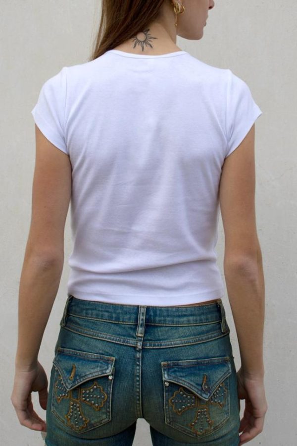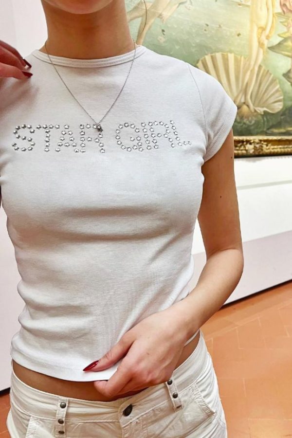 T-Shirt mit Star Girl mit Strasssteinen, Rundhalsausschnitt, kurze Ärmel, normale Länge, schmale Passform.