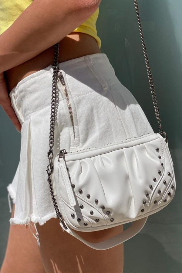 Kunstledertasche, mit Nieten, doppeltem Schulterriemen, Reißverschluss, Innentaschen.